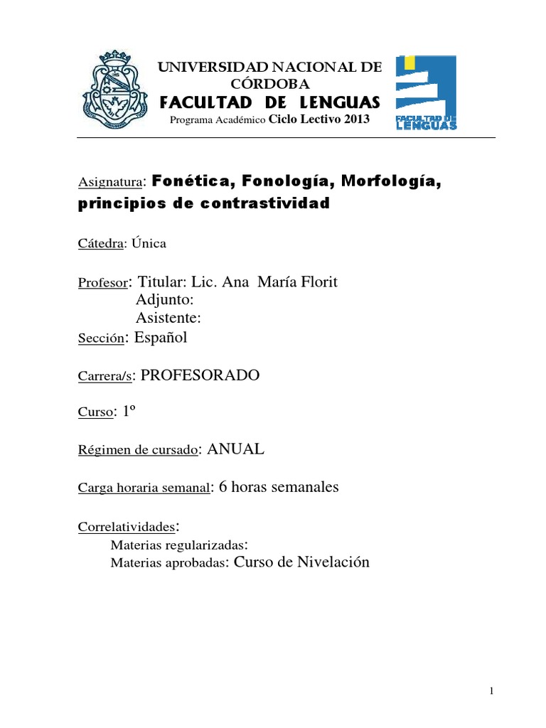 Fonetica Fonologia Morfologia Espanolas Y Principios De